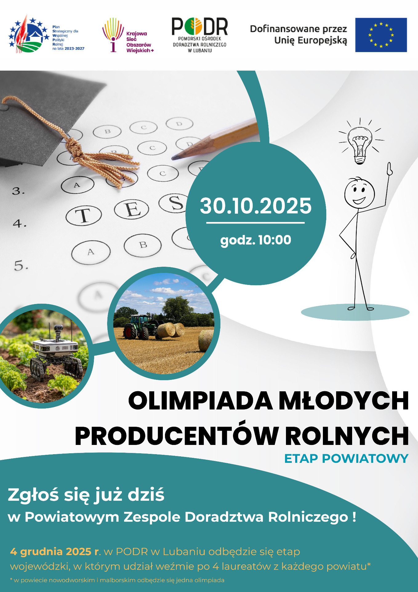 30 października 2025 o godz. 10:00 w Powiatowym Zespole Doradztwa Rolniczego w Słupsku, odbędzie się Olimpiada Młodych Producentów Rolnych – etap powiatowy.