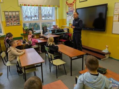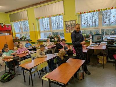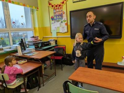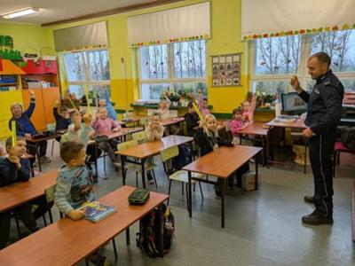 Jak podkreślają nauczyciele, policjant Michał Skrzypik przeprowadził ciekawe i merytoryczne zajęcia oraz odpowiadał na liczne pytania młodych uczestników ruchu drogowego.