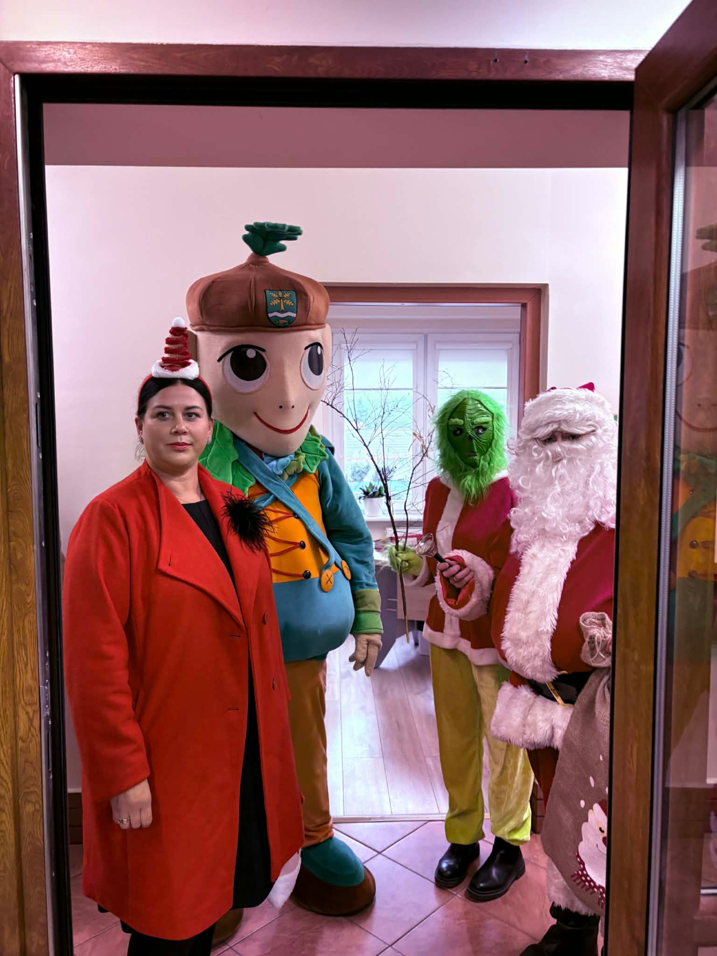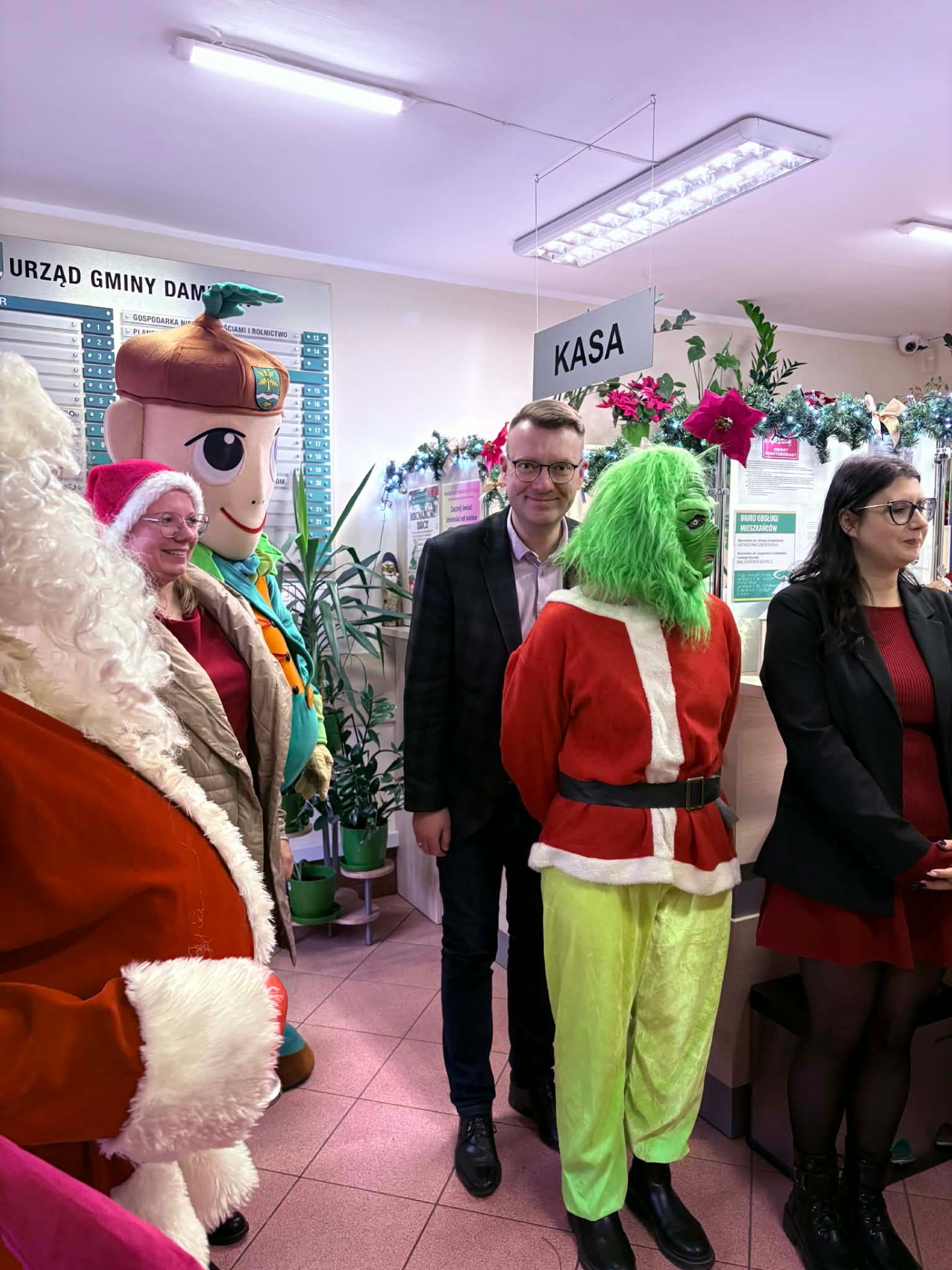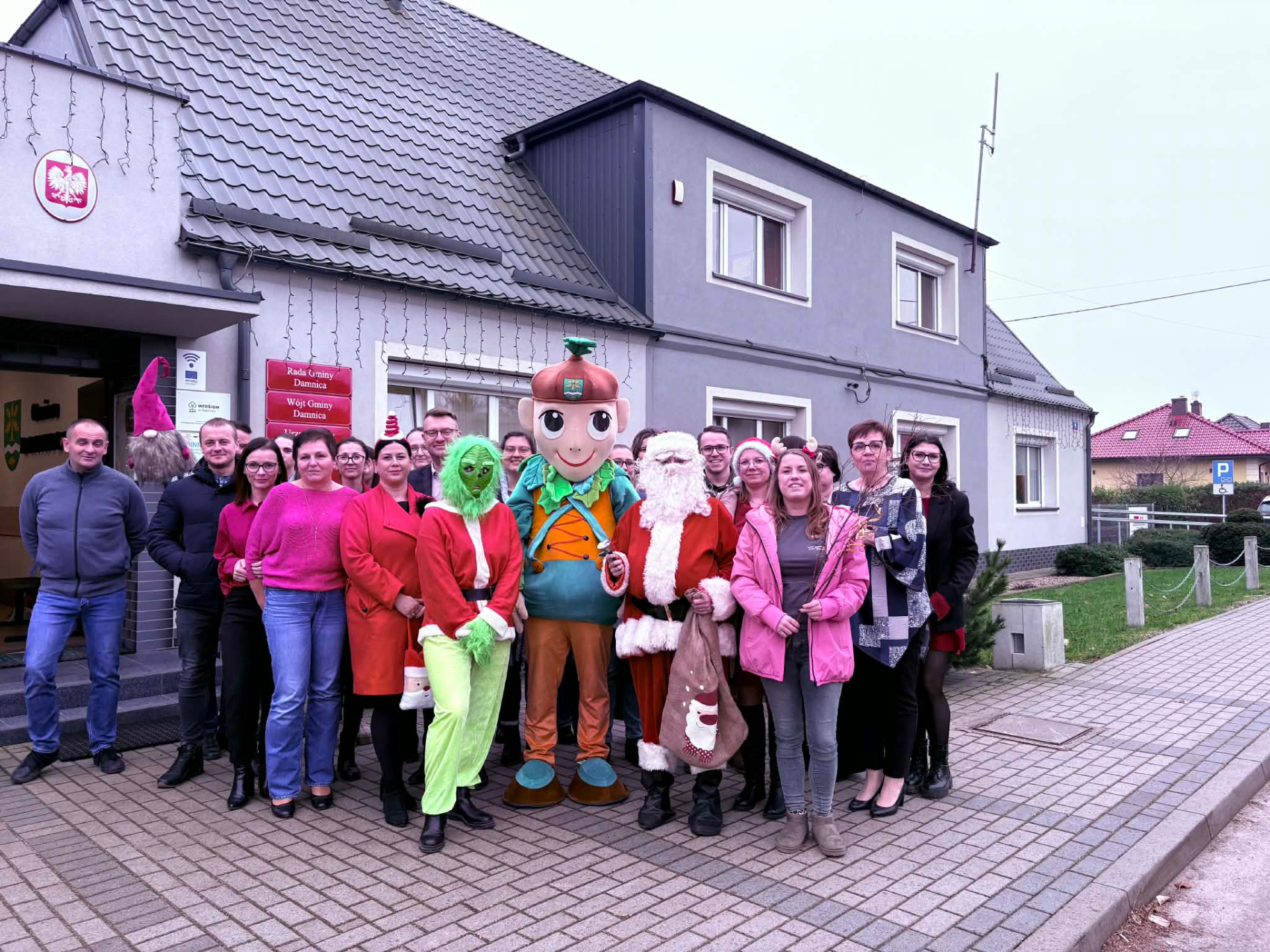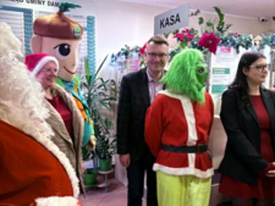 Mikołaj, Grinch, Damniś… Cała trójka odwiedza dziś damnickie instytucje.