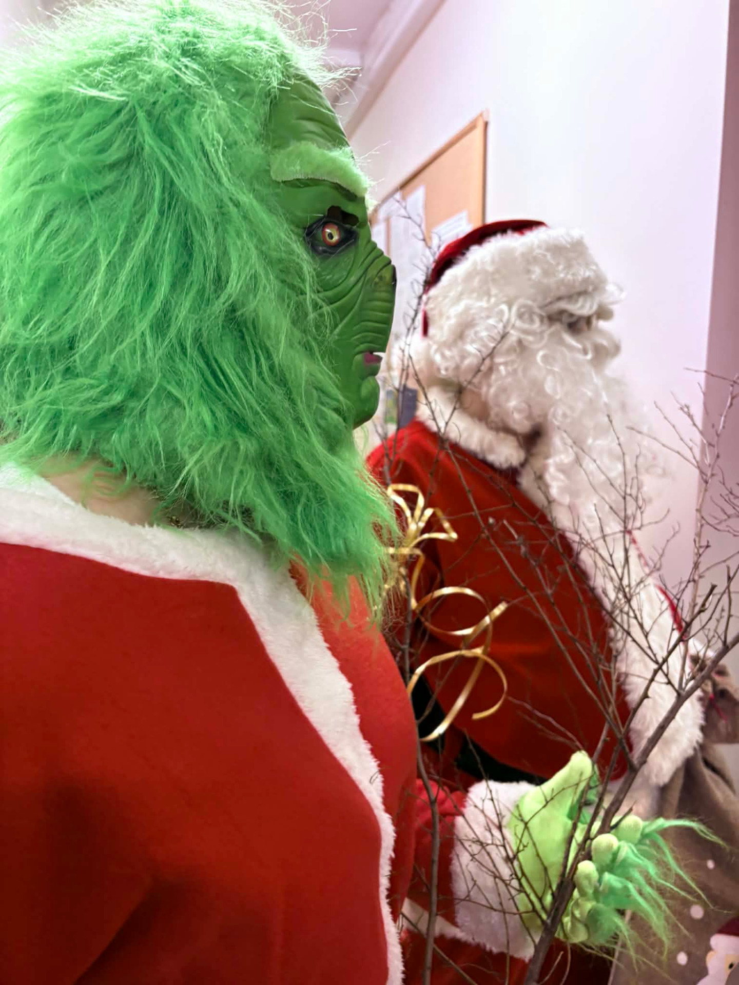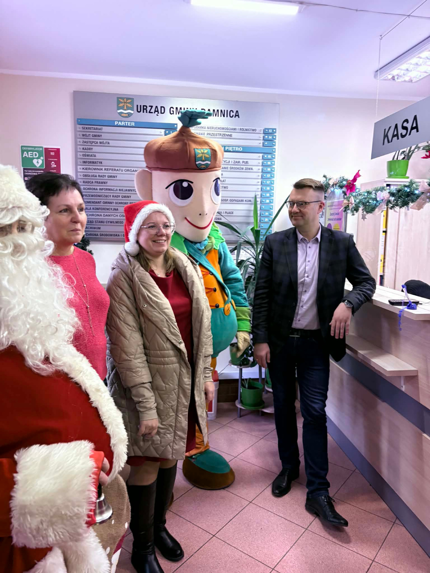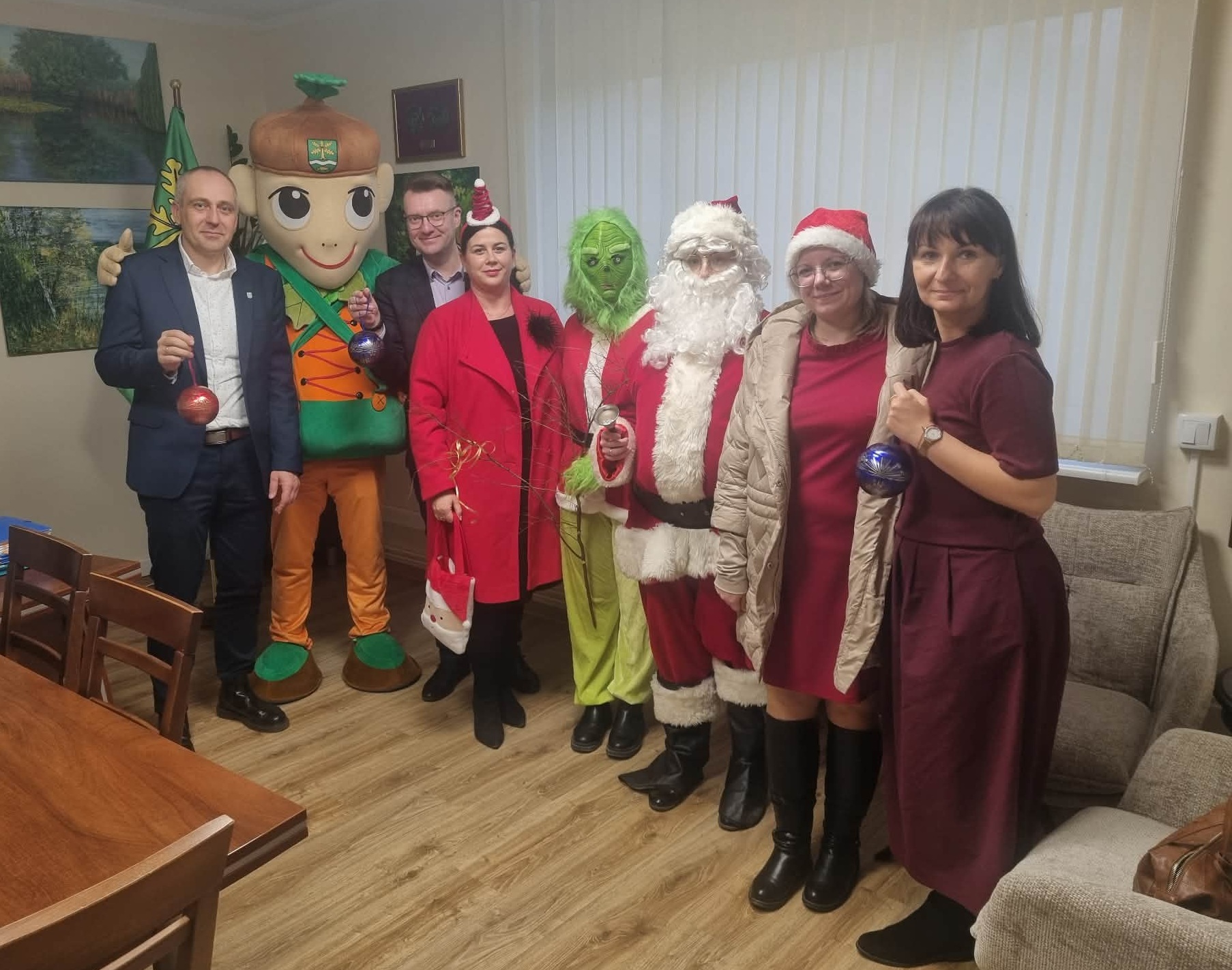 Mikołaj, Grinch, Damniś… Cała trójka odwiedza dziś damnickie instytucje.