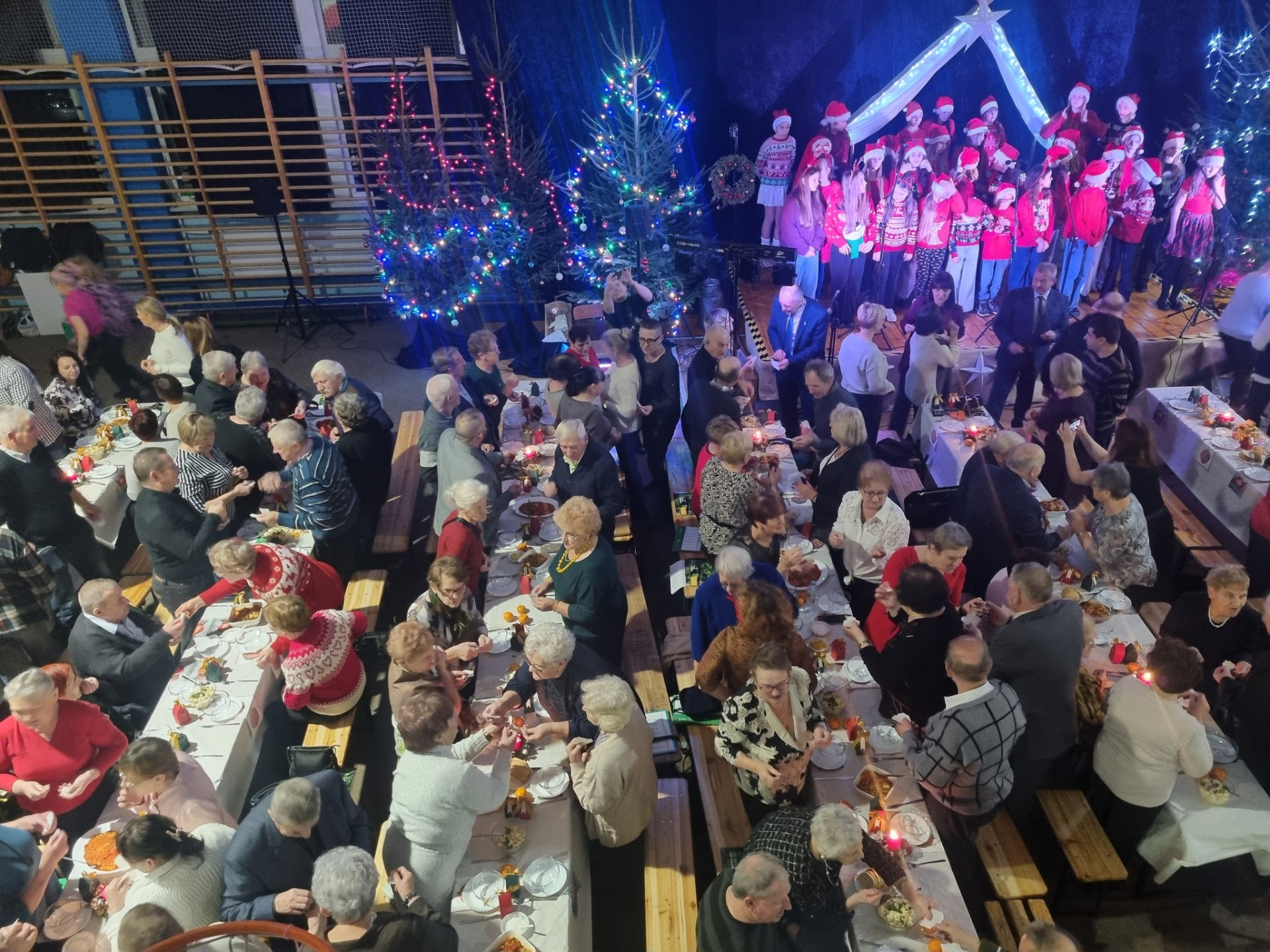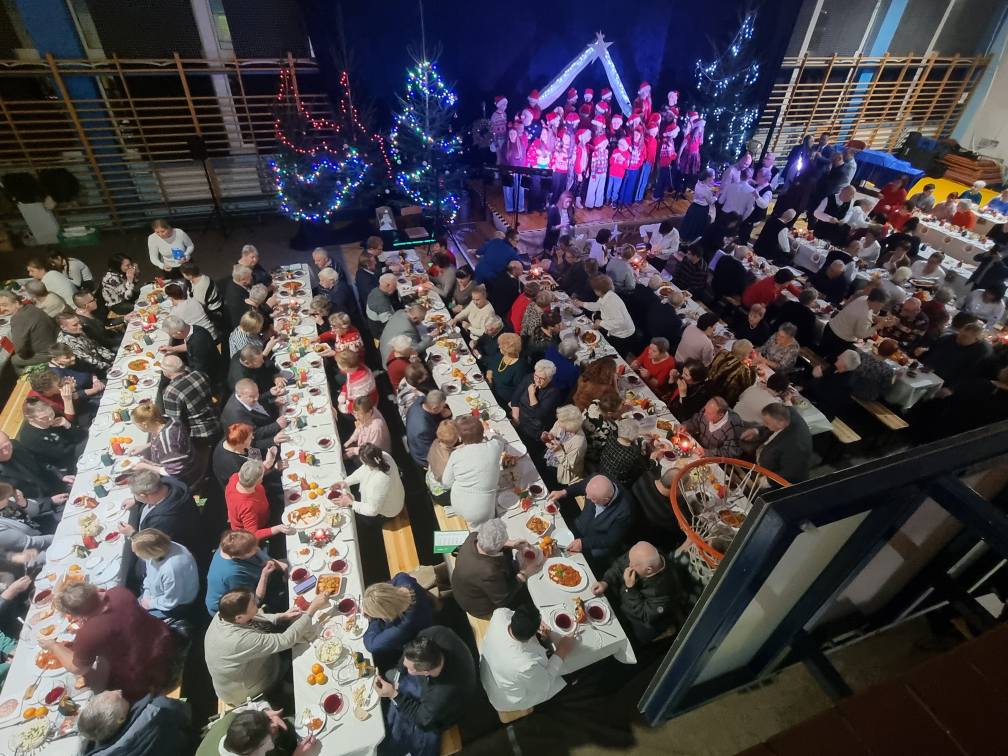 Po oficjalnym rozpoczęciu spotkania, przyszedł czas na wzajemne życzenia. Ponad dwustu gości z serdecznością dzieliło się opłatkiem, często z towarzyszącym wzruszeniem – życząc swoim sąsiadom radosnych świąt.
