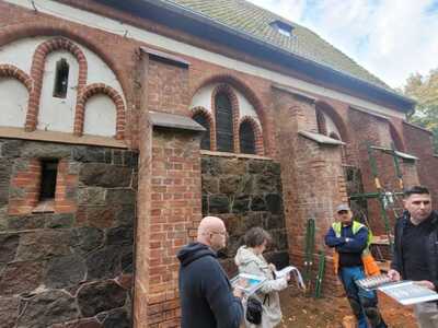 Dzisiaj przedstawiciele inwestora, samorządu, wykonawcy spotkali się z Krystyną Mazurkiewicz-Palacz, kierownikiem słupskiej delegatury Wojewódzkiego Urzędu Ochrony Zabytków. Była to okazja do omówienia etapów realizacji inwestycji oraz szczegółów konserwatorskich.